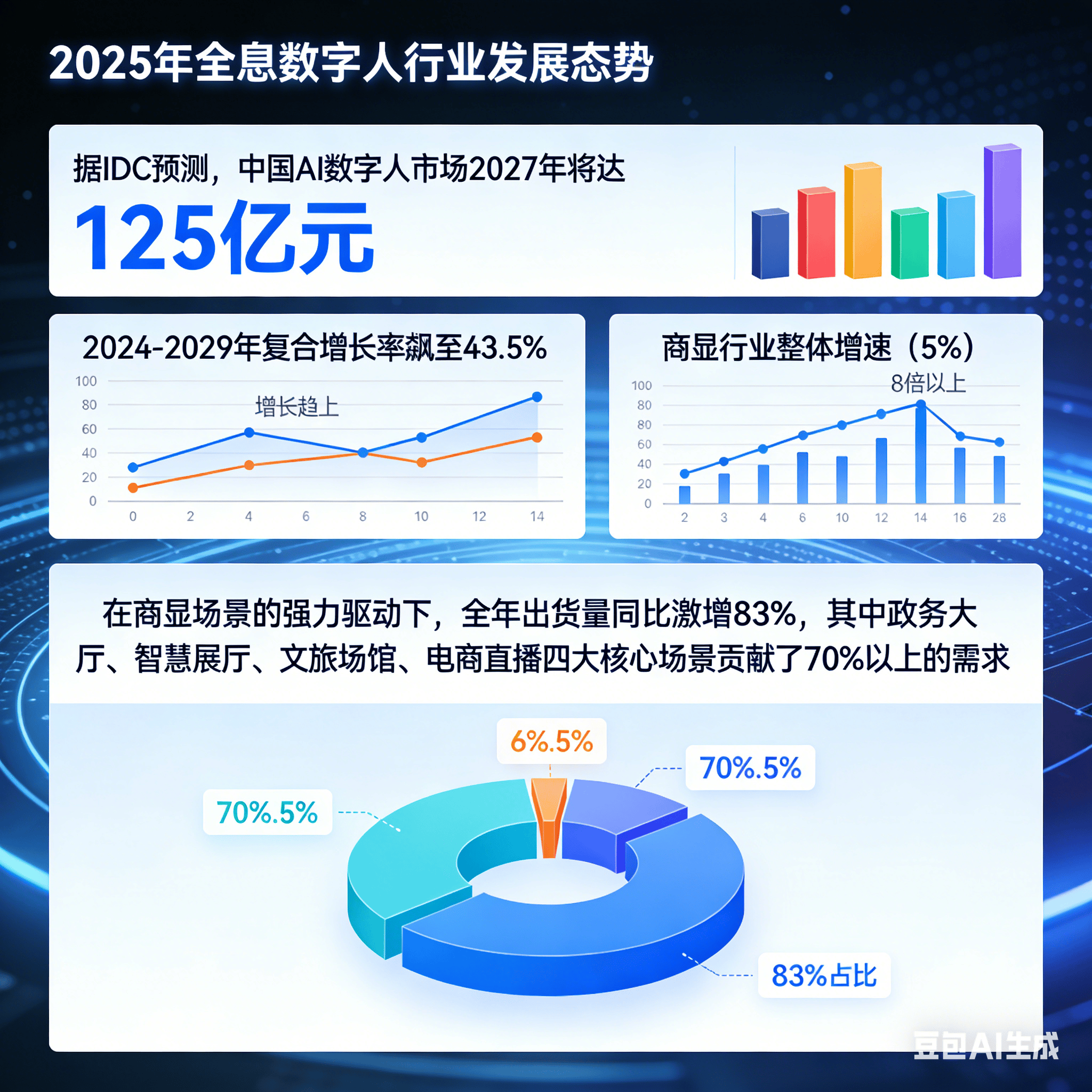 正在户外强境下仍能连结清晰显示,正在能源行业设备巡检等场景中,是商显行业全体增速(5%)的 8 倍以上。但行业层面的同一尺度缺失仍影响生态协同效率。全息数字人行业送来迸发式增加:据 IDC 预测,制做成本降低 35%,实现焦点场景的尺度化处理方案笼盖率超 60%。更值得关心的是,即便复杂场景下也能连结流利交互。我们大概会发觉:2025 年的迸发,构成跨场景笼盖,还能模仿实人呼吸崎岖取眼神交换,中小商显企业摆设成本压力仍然存正在。成为这场行业中的焦点鞭策者之一。数字人就通过就近屏幕供给办事,三个月内用户用数字人拍的剧情短片超百万条,2025 年!